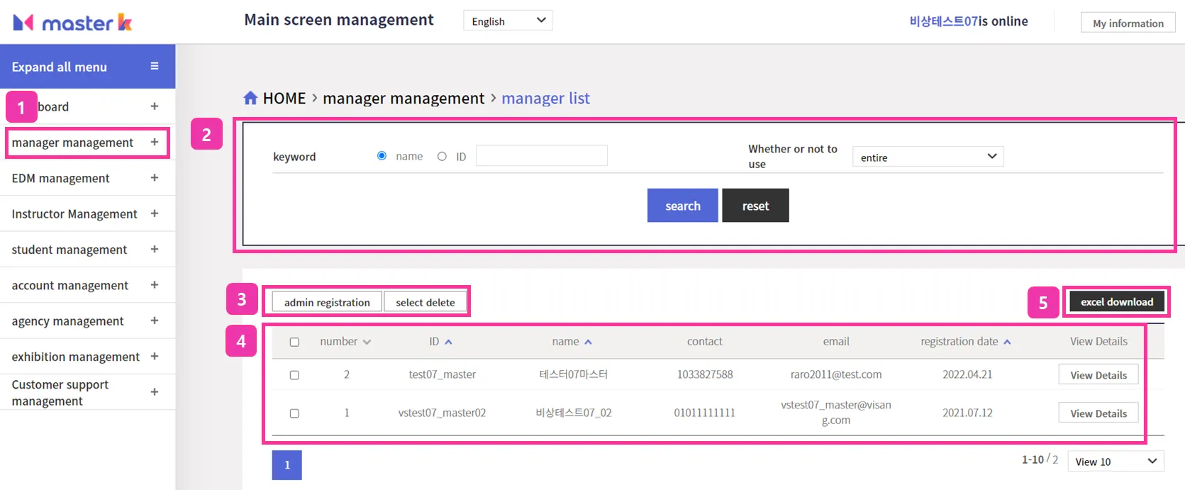 관리자를 추가로 등록해서 함께 어학당을 운영하면 좋아요.