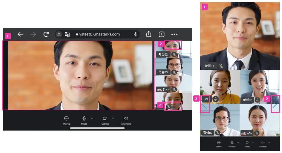 모바일 접속 시 화상 수업의 사용법을 알려드려요.