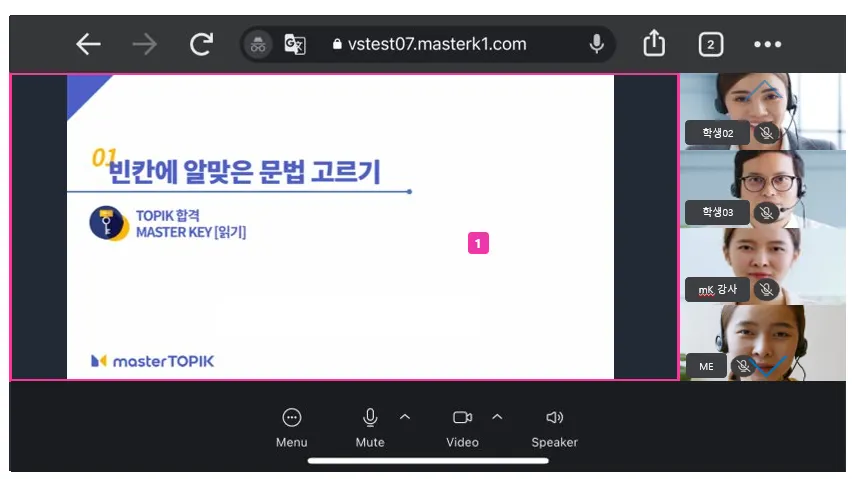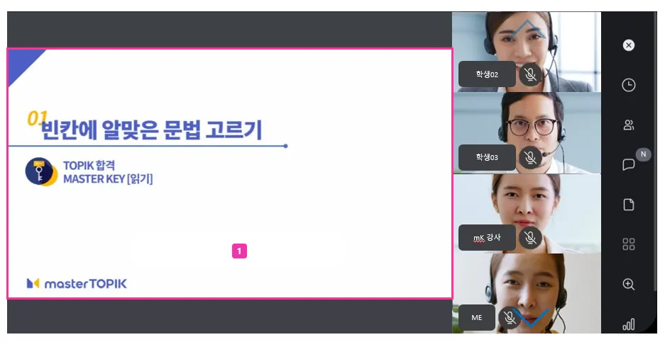 화면이 커지면 오른쪽 아래에 나와 선생님 화면이 나와요.