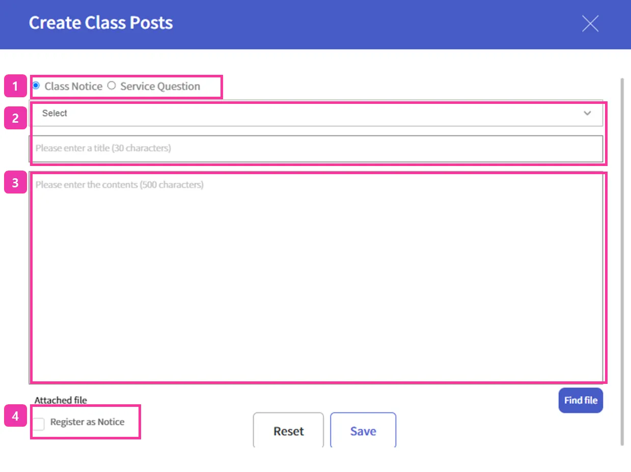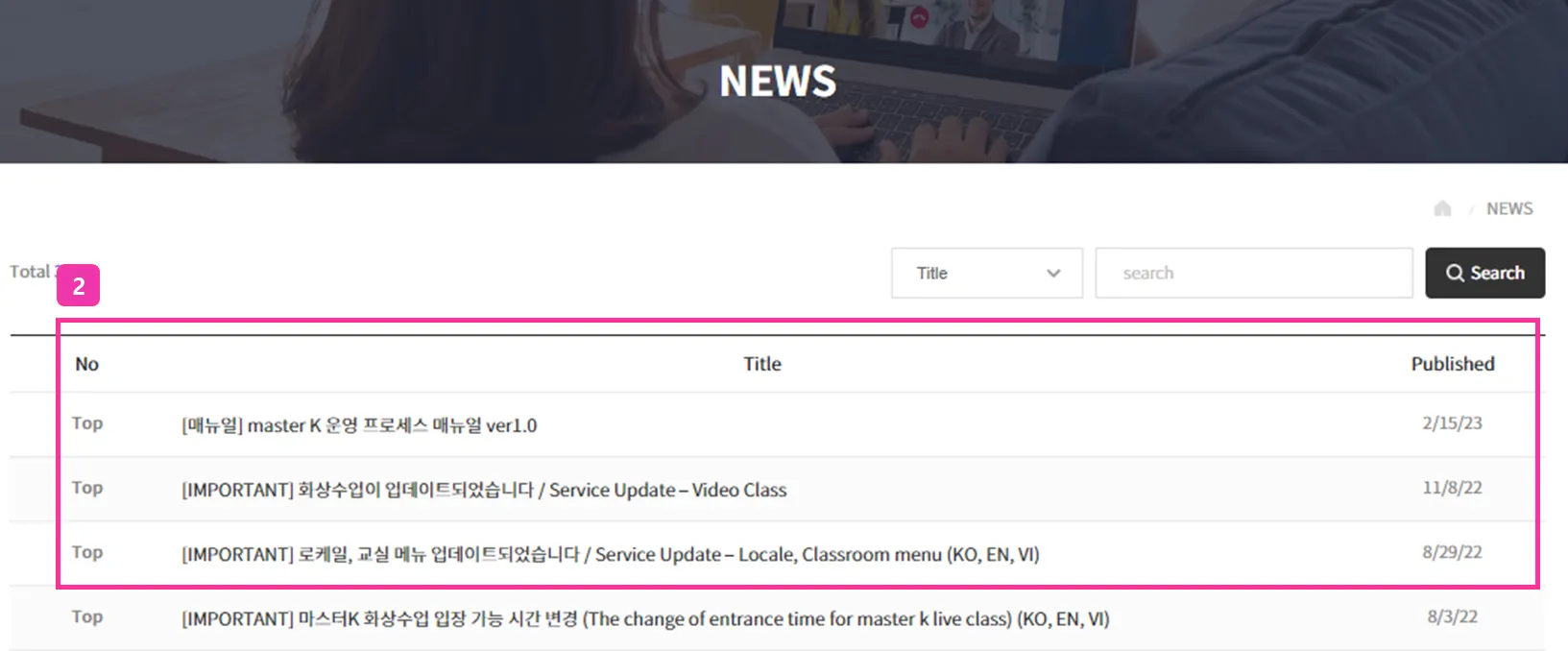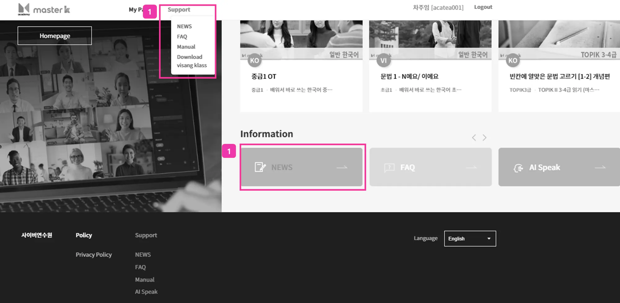 Service inquiries are used when there is an error in using master k. You can also upload files when posting class notices.