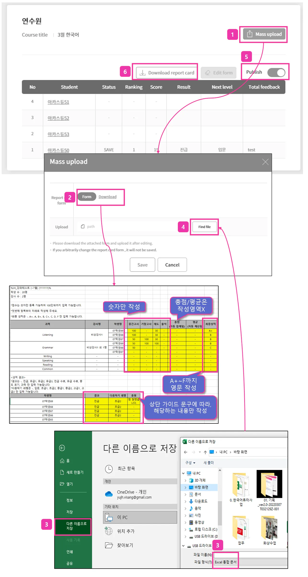 성적 입력 시에는 반드시 가이드에 있는 네모 칸만 작성해야 해요. 양식을 꼭 지켜주세요.