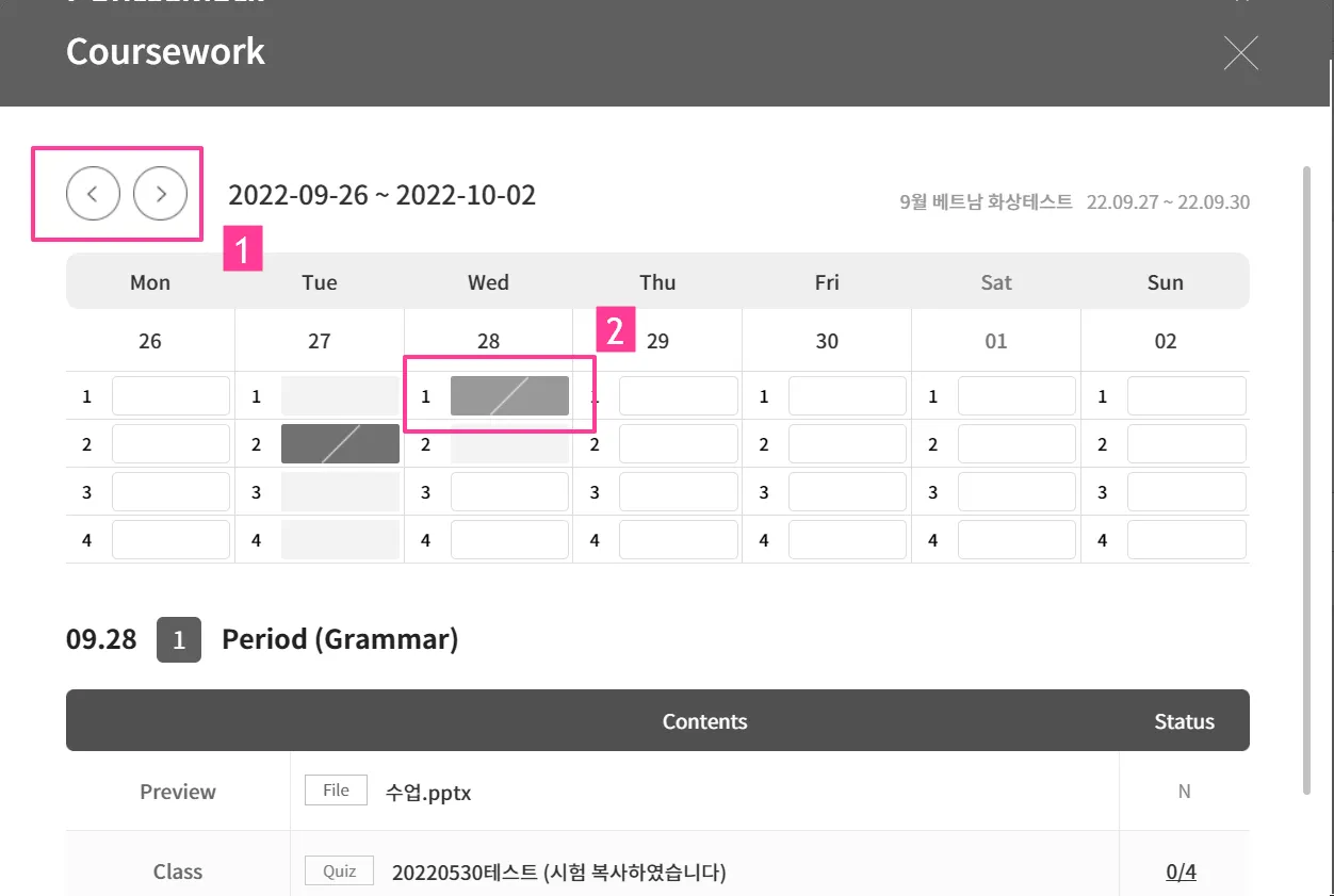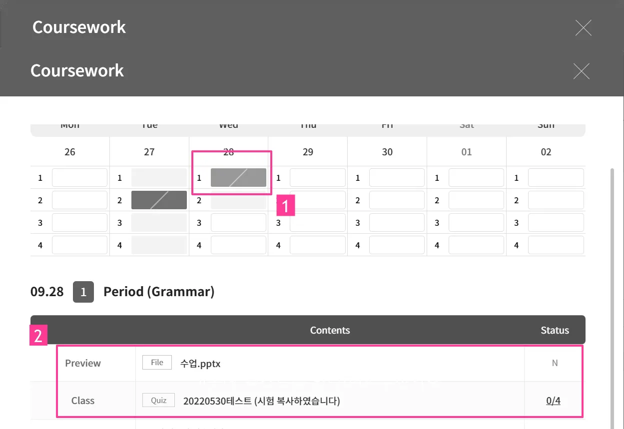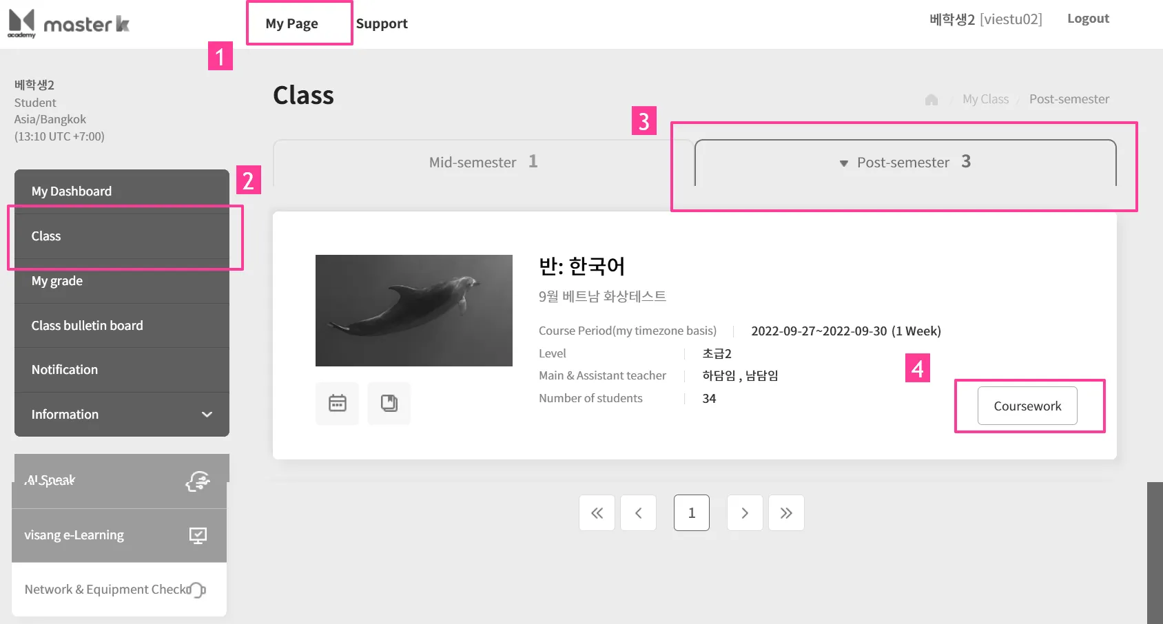 Go to [My Page โ Class โ Post-semester โ Coursework].