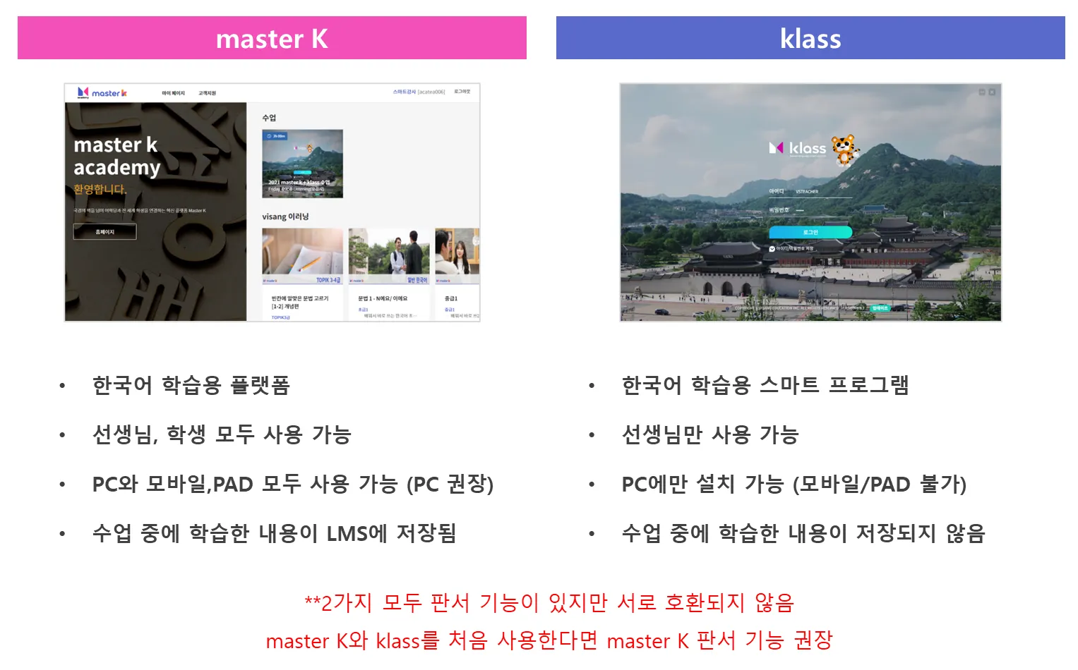 klass (Korean Language Smart Solution) is a smart teaching tool created based on the Visang Korean textbook.