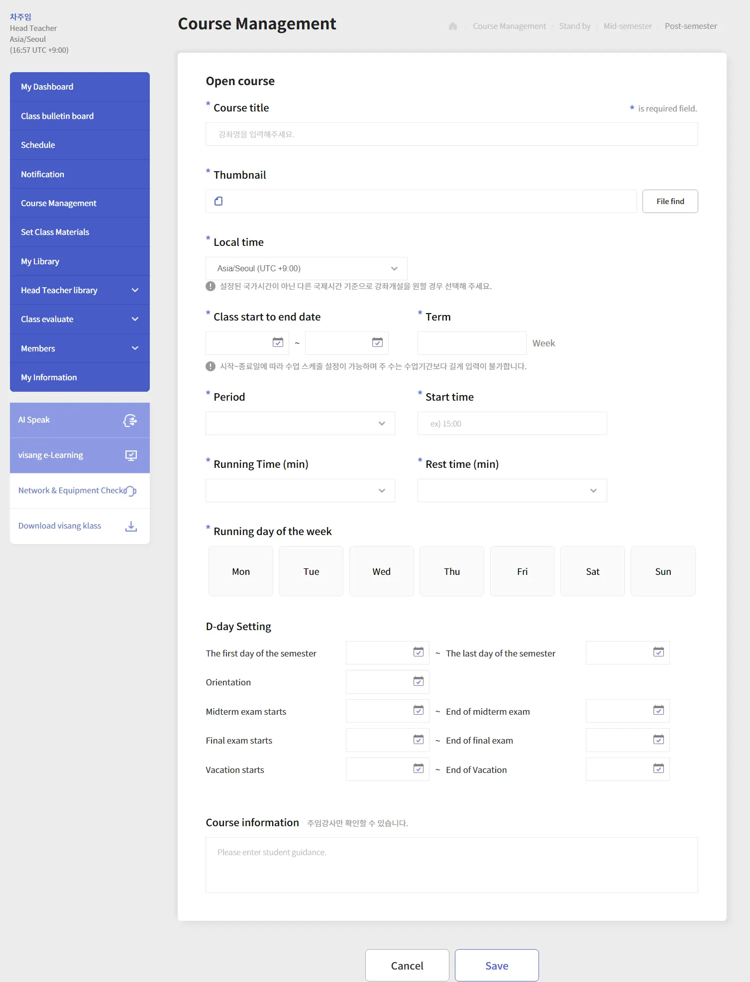 강좌의 정보에 맞게 정보를 입력해 주세요.