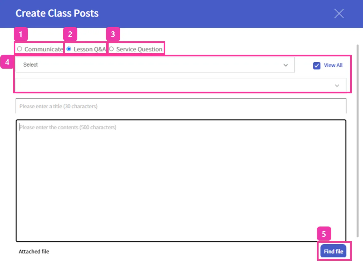 [Lesson Q&A] allows you to choose the class you are receiving the lesson and ask questions to the teacher.