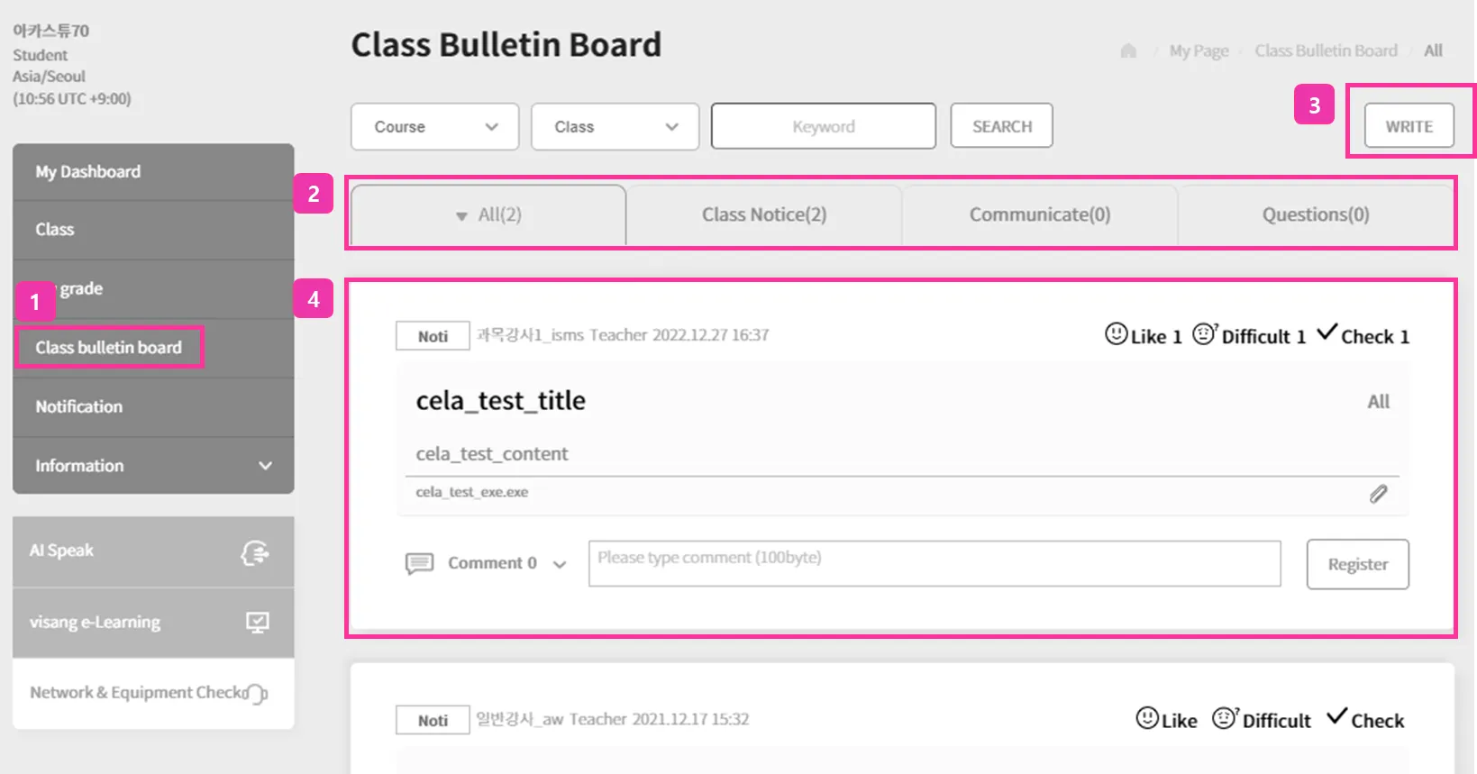 [All] shows all posts, [Class Notice] shows the notices posted by the teacher,