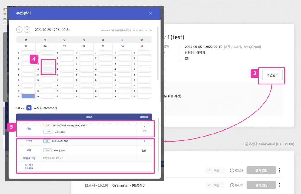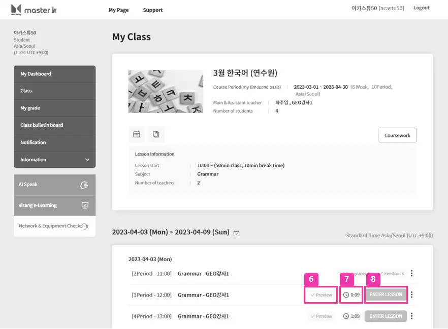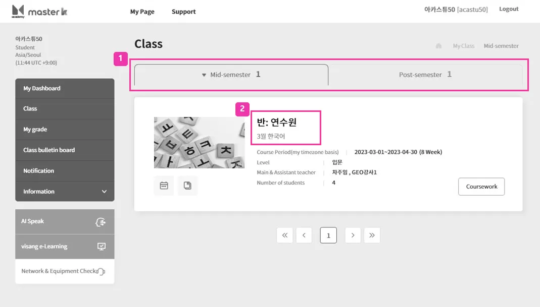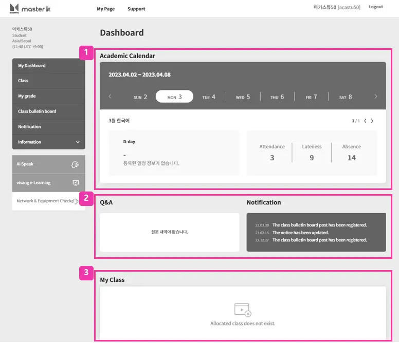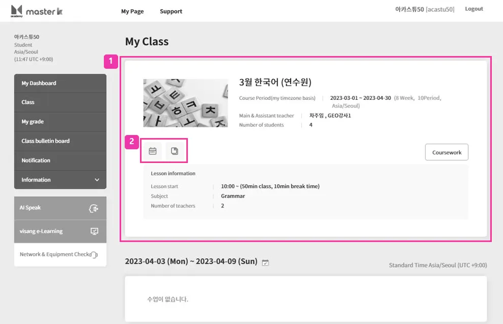 You can check the course information, curriculum, timetable, and class management for the course you are currently taking.