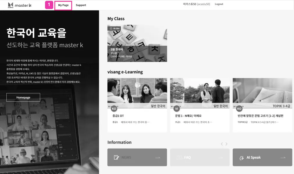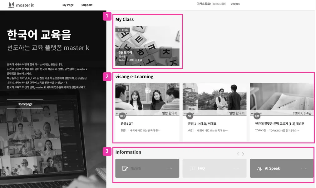 From logging in to checking class information, I will show you on the overall functions needed to participate in a class.