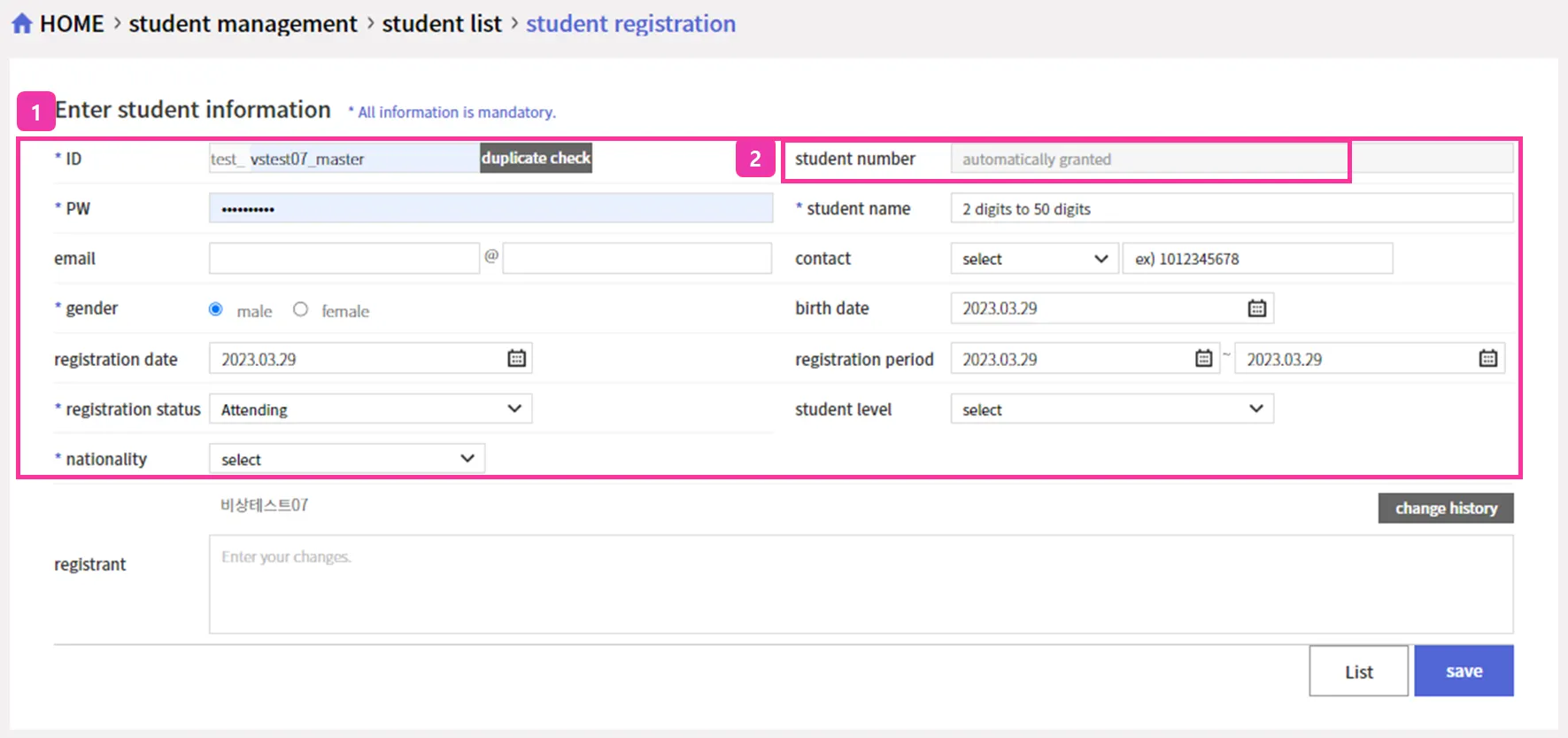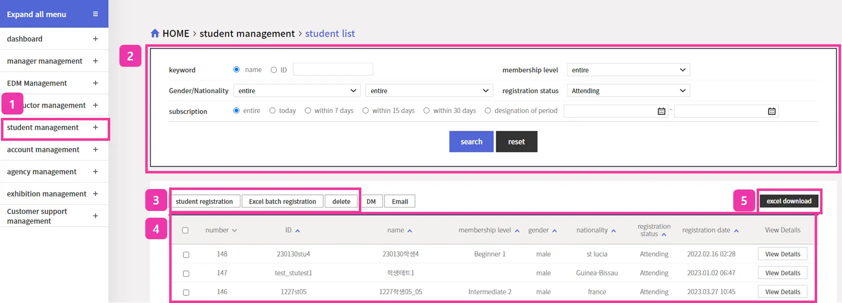 Click on [Instructor management] on the admin page and then click on [Instructor list].