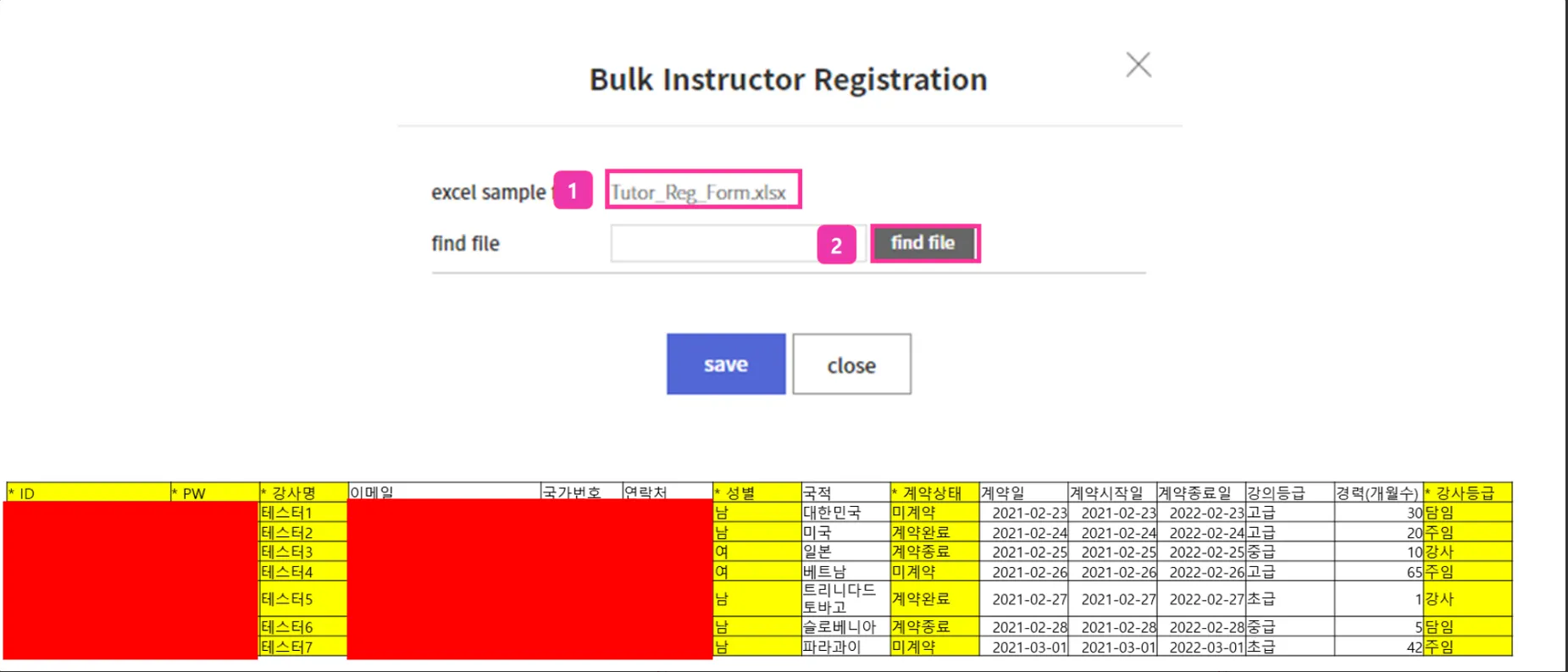 Click on Instructor registration to register one account at a time, or click on Excel batch registration to register multiple accounts at once. You can delete the selected account to click on Delete.