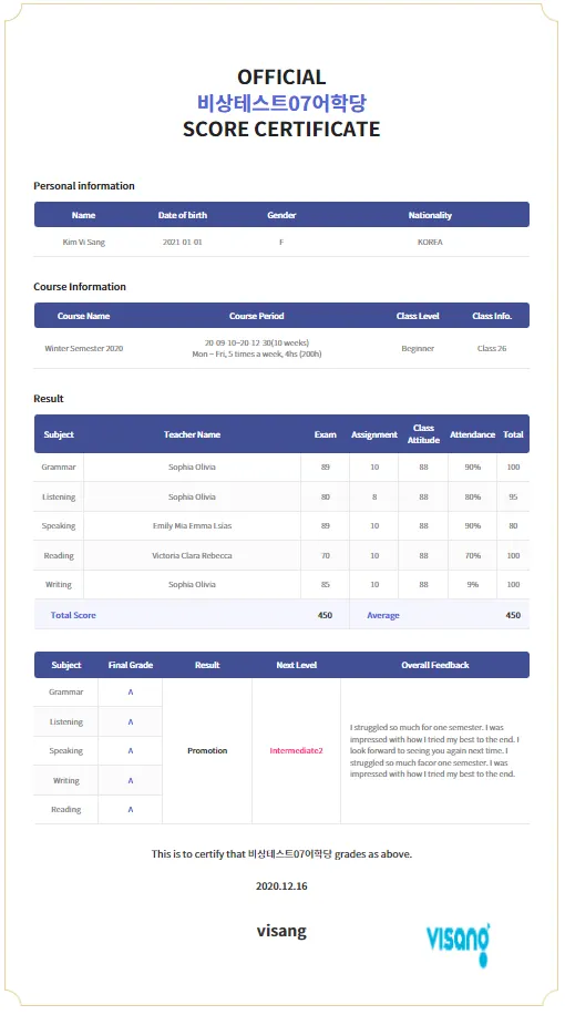 If it is registered correctly, students can receive the certificate in the same format.