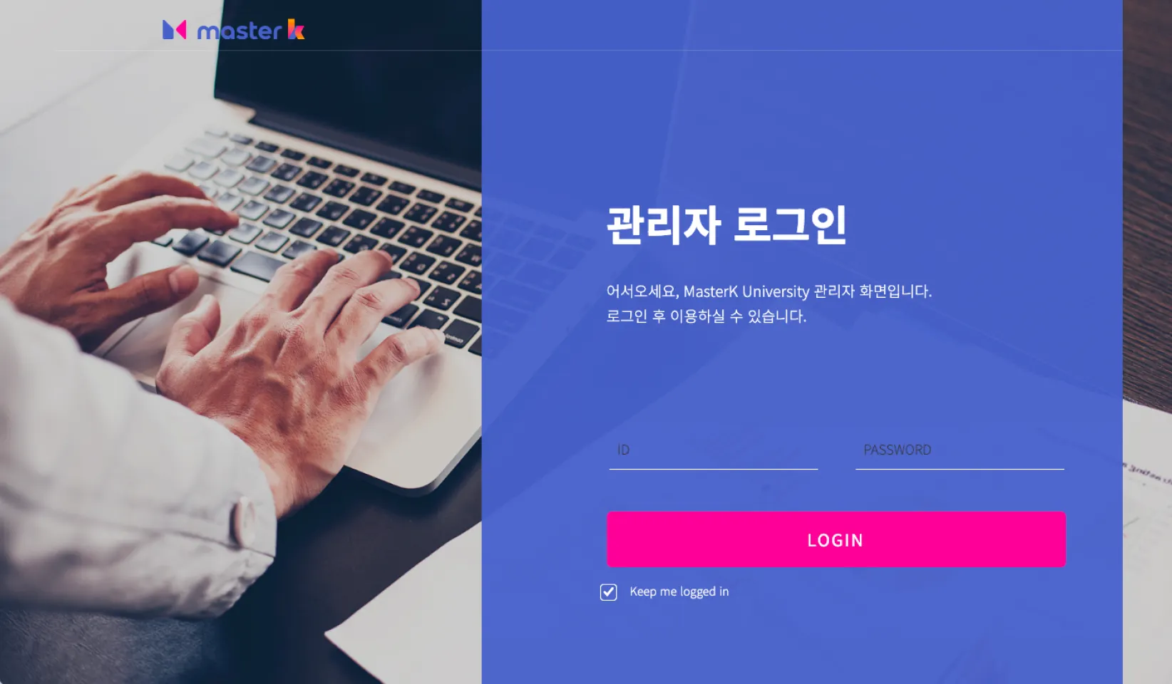 master k or 기관에서 전달받은 관리자 페이지 URL 진입