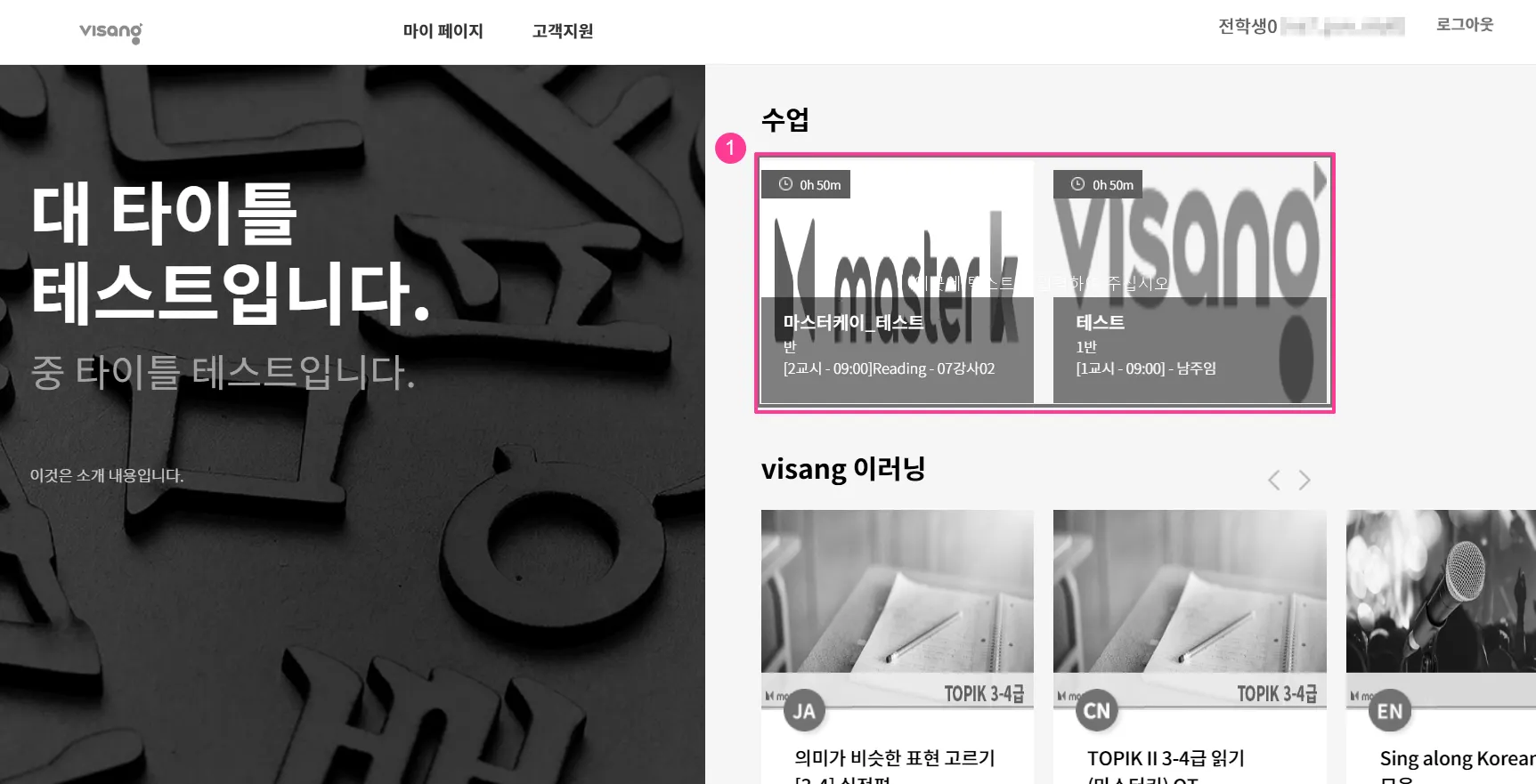 로그인 후 페이지에서 수업란의 썸네일을 클릭해요.
