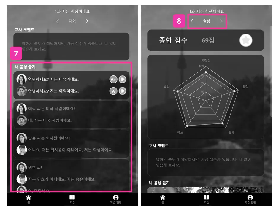 AI SPEAK allows you to practice Korean pronunciation.